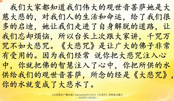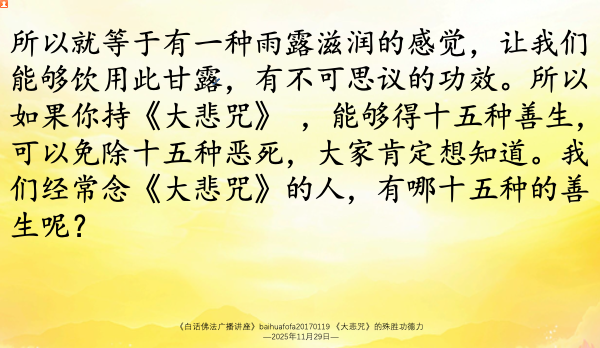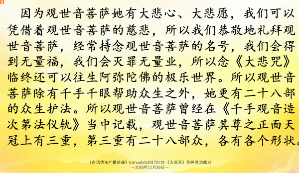 • 【音 • 图 • 自我测试 】Baihuafofa20170119 《大悲咒》的殊胜功德力|白话佛法共修